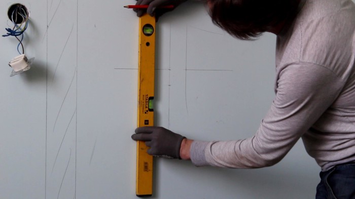 Перш ніж приклеїти пробкове полотно або плитку на стіну, рекомендовано виконати розмітку стіни. Для шпалер достатньо горизонтальних смуг. Плитка вимагатиме ліній по всій стіні.