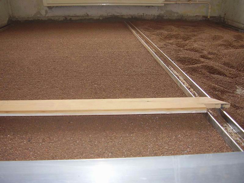• Між стінами та дошками встановлюють дерев'яні клини. Їх не прибирають до того моменту, коли по підлозі можна буде ходити. Термін від схоплювання до експлуатації – 3 дні.