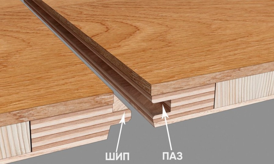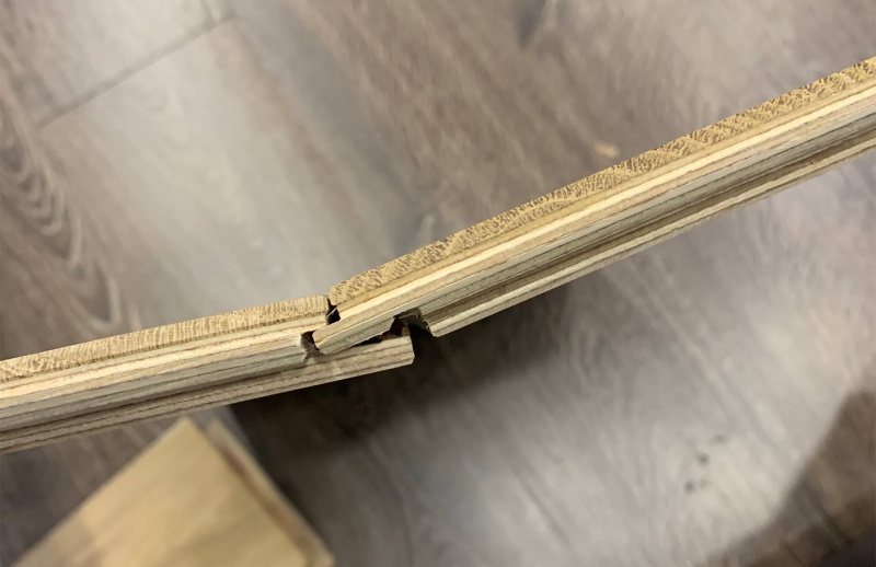 Шип-паз міцно фіксує дошки між собою. Але фахівці не радять укладати інженерну дошку без клею. Причина – вигинання ламелів по краях площі через умови приміщення (вологість, перепади температур, сухість).